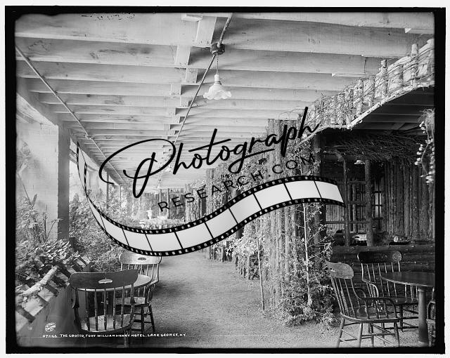 Grotto,resorts,trees,porches,Fort William Henry Hotel,Lake George,New York,1900
