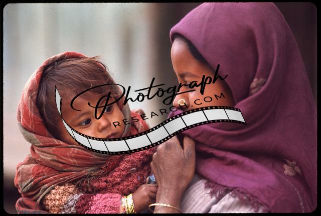 Nepalese Woman wearing Purple Headscarf,Nose Ring,Holding baby,Sikkim,India