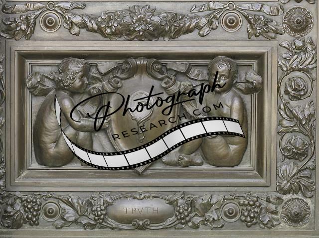 Title: [Exterior view. Bronze doors at the main entrance with female figures representing Imagination (holding a lyre) and Memory (holding a helmet), by Olin L. Warner. Library of Congress Thomas Jefferson Building, Washington, D.C.]