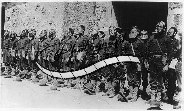 US Marines,Standing in Ranks,Gas Masks,France,1918