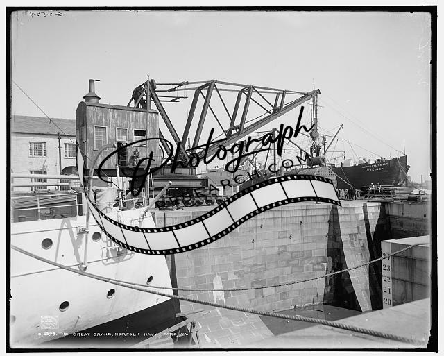 Great crane,Norfolk Navy Yard,hoisting machinery,Virginia,Portsmouth,VA,c1905