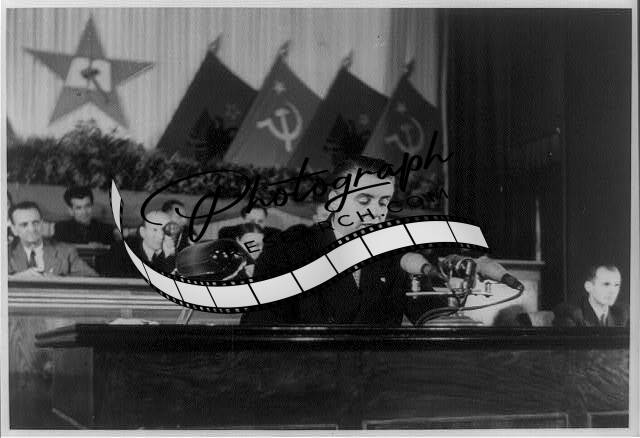 Enver Hoxha addressing delegates,Fourth Congress of Albanian Trade Union,1956