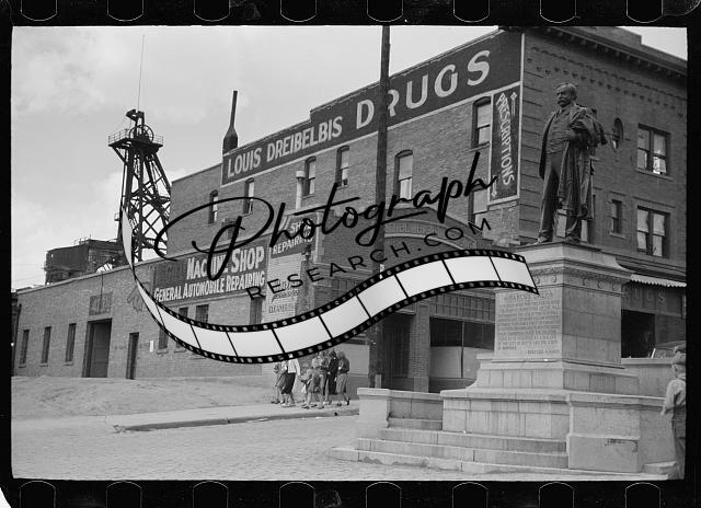 Statue of Marcus Daly,pioneer miner,Butte,Montana,MT,Summer 1939,Rothstein,1