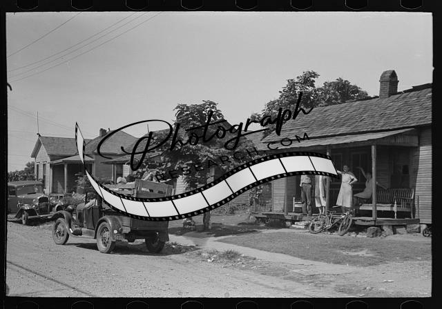 Title: Main street of Muskogee, Oklahoma with migrants' car passing down the middle of it
