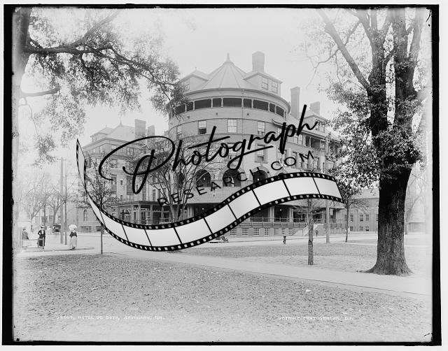 Hotel De Soto,resorts,buildings,porches,sidewalks,trees,Savannah,Georgia,GA,1880