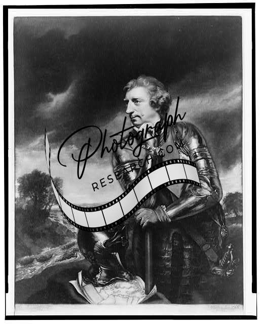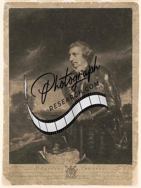 Summary: Illustration showing Sir Jeffery Amherst, half-length portrait, facing right, wearing military uniform.