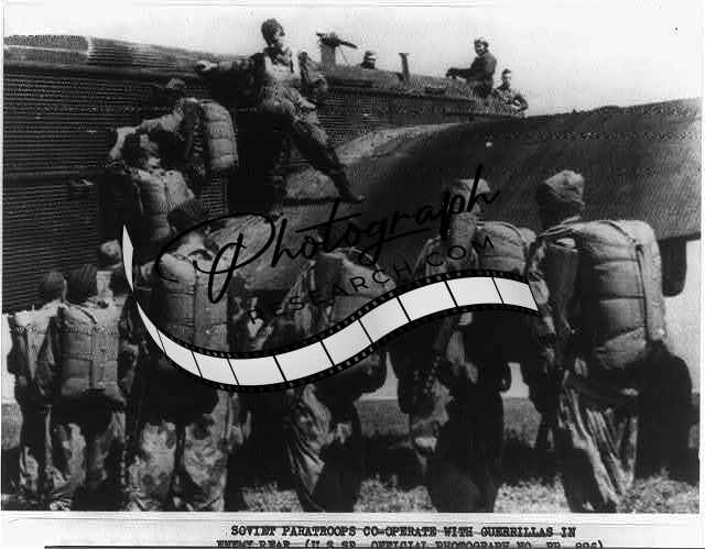 Group,Soviet parachutists boarding plane,drilling practice,World War I,1942