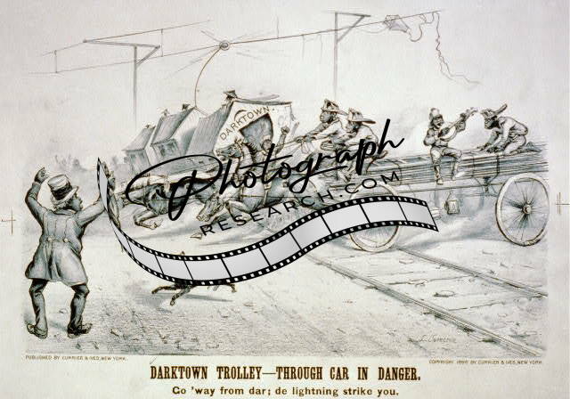 Darktown Trolley,Through Car in Danger,Transportation,Humor,1896,Currier & Ives
