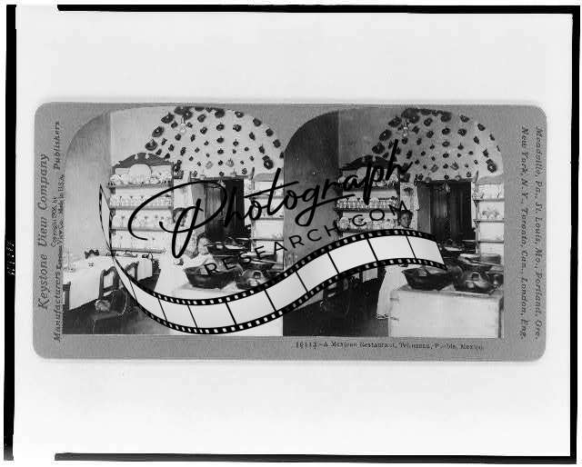 Photo of Stereograph,Mexican Restaurant,Tehuacan,Peubla,Mexico,c1908,Eating