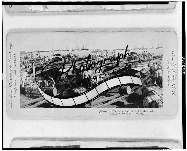 Photo of Stereograph,Unloading Lighters,Plaza,Puerto Rico,c1900,Pier,Wharf