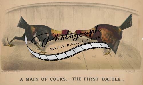A main of cocks,--the first battle,Currier & Ives,1856-1907,animals,chickens