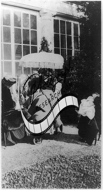 Tasker M. Bliss in chaise lounge:,2 women,umbrella,outside