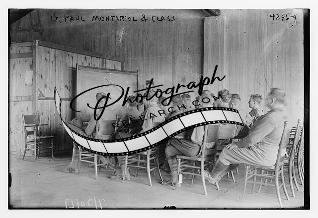 Lieutenant Paul Montariol & class,education,chalkboard,students,Bain News
