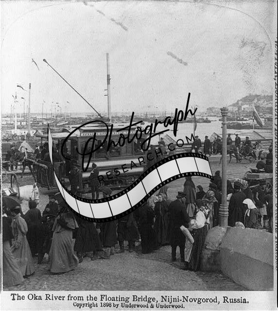 Oka River,Floating Bridge,Nijni-Novgorod,Russia,c1898,Streetcar,People,Umbrella