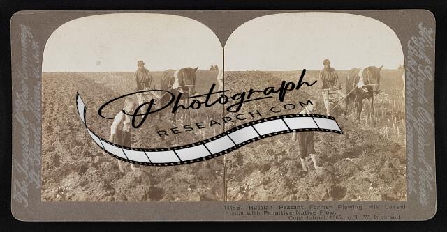 Russian peasant farmer plowing his leased fields with primitive native plow