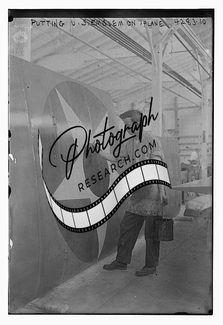 Putting U.S. Emblem on plane,airplane,man with paint,bucket,aviation,employment