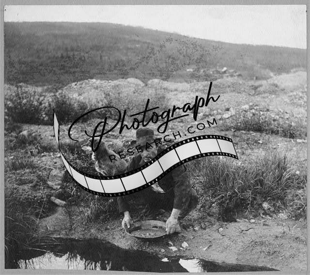 Miner panning gold,1916,Gold Mining,Alaska,AK,Dog,smoking pipe