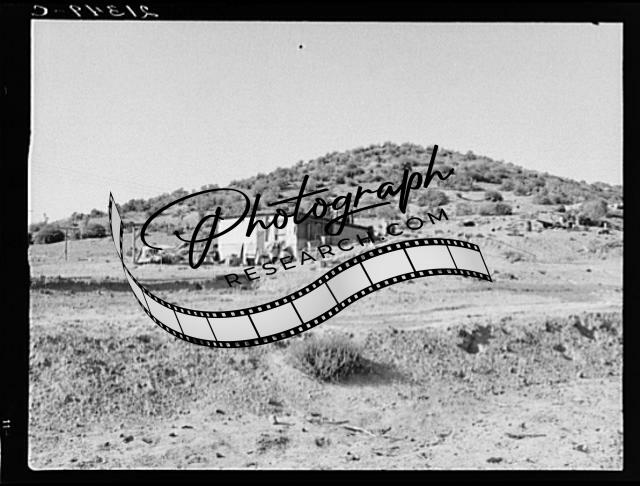 Title: The Niccum farm, seen from road against sage brush hills. Malheur County, Oregon