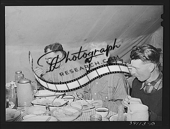Title: Sheep shearers eating dinner in central tent of the outfit. Ranch in Malheur County, Oregon