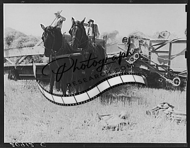 Title: Threshing, midsummer, noon. Five miles west of Malin. Klamath County, Oregon