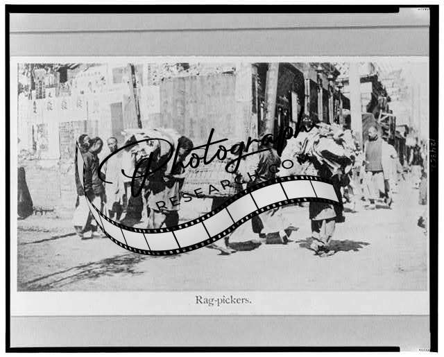 Rag-pickers walking on street,China,c1905-1926,ragpicking