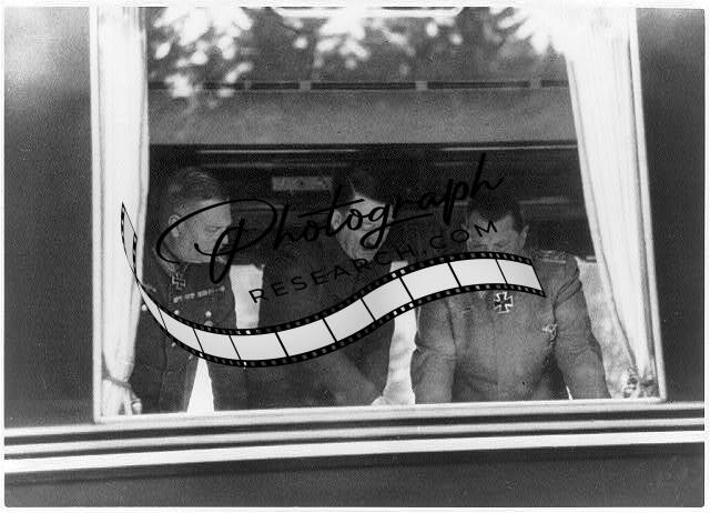 Hitler and Goering confer in Hitler's special train - view through window