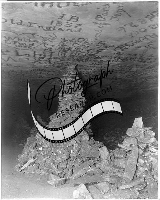 Mammoth Cave,Kinhicky's Cairn,stalagmite,graffiti,rock formations,Kentucky,c1891