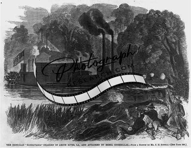 Iron Clad,BARRATARIA snagged in Amite River,Louisiana,LA,Rebel Guerrillas,1863