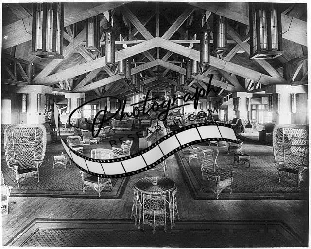 Grand Canyon Hotel Lounge toward office,Yellowstone National Park,Wyoming,c1922