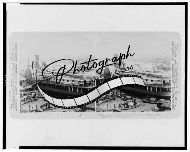 Photo of Stereograph,Where Steamers land,Chukiang River,Canton,China,Guangzhou