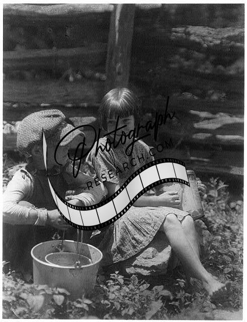 Boy & Girl seated in Garden,Holding Buckets,c1930,Doris Ulmann,Photographer