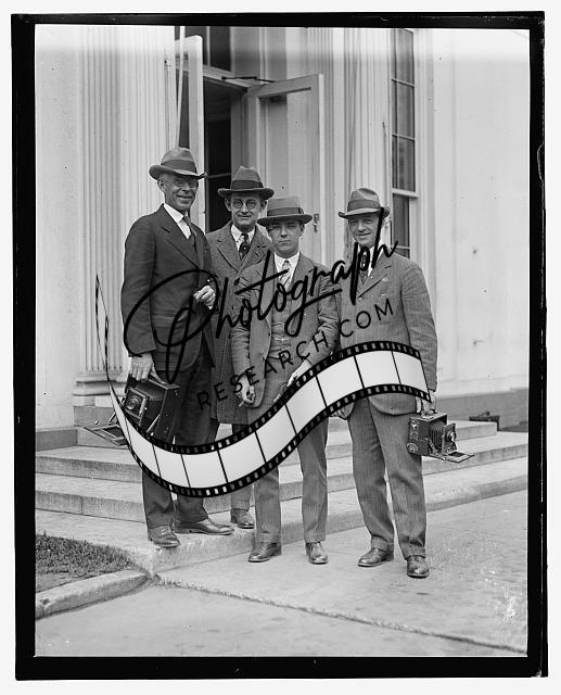 Three men with cameras outside White House,Washington,DC,Photographers
