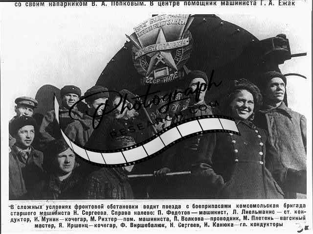 N. Sergeev & comsomol Brigade,Russian Railroad Workers,1944,Locomotive,Train
