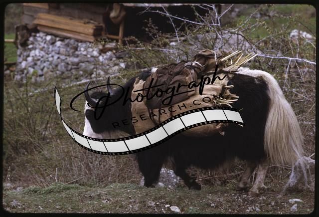 Yak migration,Lachung,India,Animal carrying pack,Alice Kandell,May 1971