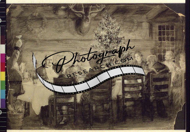 Santa Claus proposing a toast at a table full of people,William Leroy Jacobs