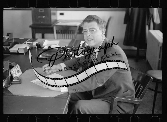 Unidentified Man writing at table,Farm Security Administration,FSA,Desk,Phone