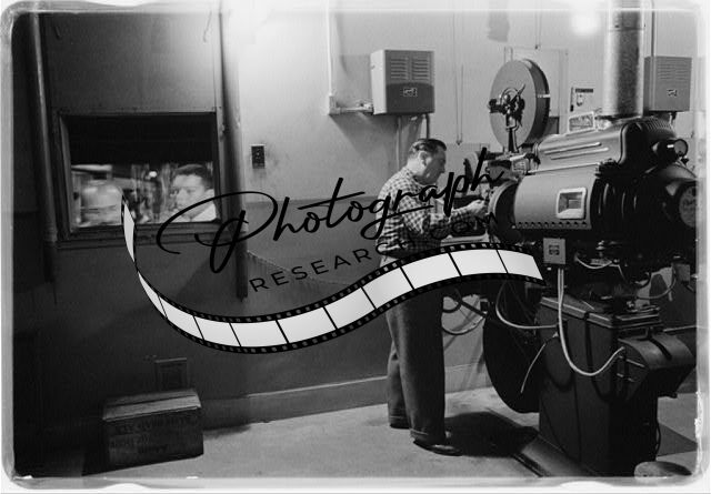 Man working with a projector in a movie theater,Motion Pictures,February 1958