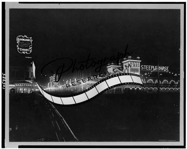 Boardwalk,night,lighting,Steeplechase,signs,Atlantic City,New Jersey,NJ,c1911