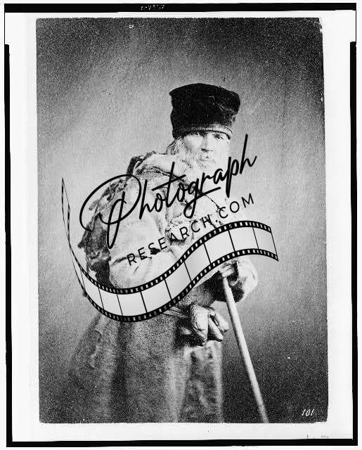 Bearded Man wearing Backpack,walking stick,Russia,1880-1924,hat