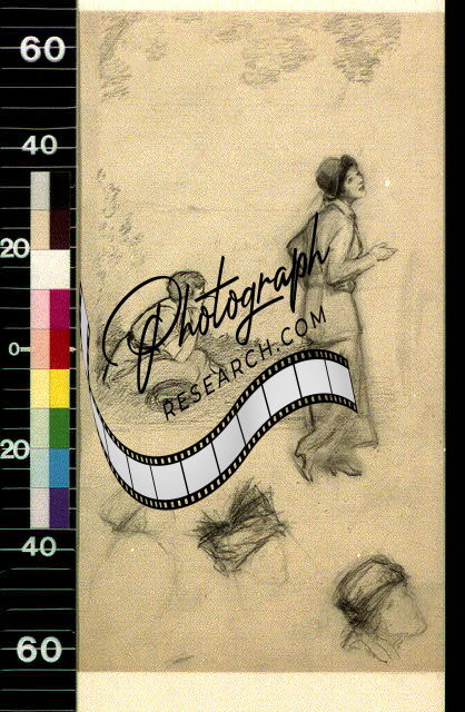 Seated girl,girl,three heads with hats,William Leroy Jacobs,1890-1917,Woman