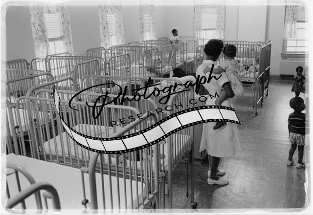 Woman holding a child in nursery,Junior Village,Washington,D.C.,March 1958