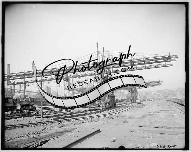 Brown electric hoist unloading freighter Constitution,Cleveland,Ohio,OH,1900
