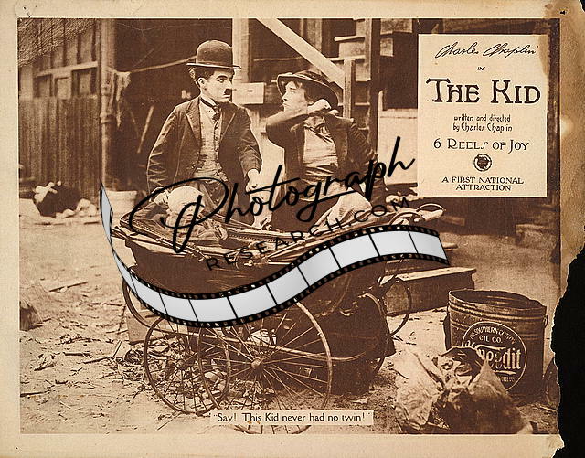 The Kid,Charlie Chaplin with actress,baby carriage,motion picture lobby card
