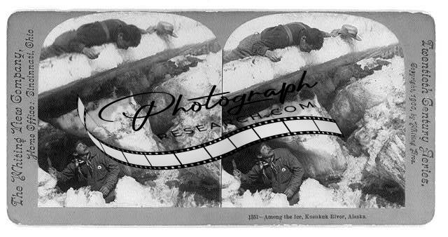 Photo of Stereograph,Among the Ice,Kozukuk River,Alaska,AK,c1900,Men,Gold Travel