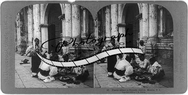 Manila,Philippine Islands: Flower sellers at Binondo Church,c1902,street vendor