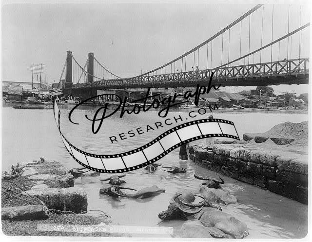 Manila,Philippine Islands,bridge,water buffalo,c1899