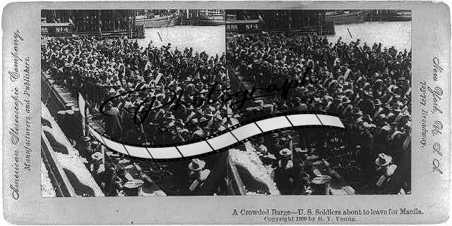 A crowded barge,U.S. soldiers about to leave for Manila,c1899,Philippine Islands