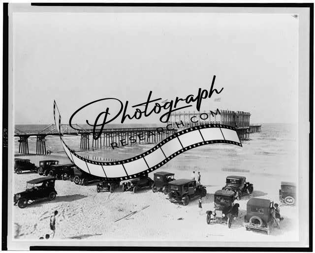 Ocean Pier Casino,Daytona Beach,Florida,FL,automobiles parked on sand,c1920