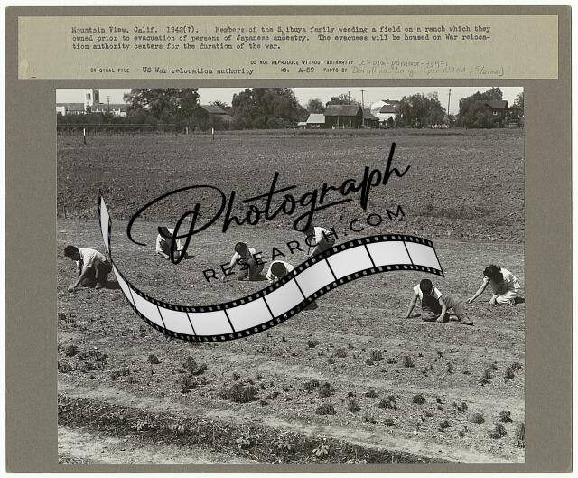 Mountain View, Calif. 1942(?). Members of the Shibuya family weeding a field on