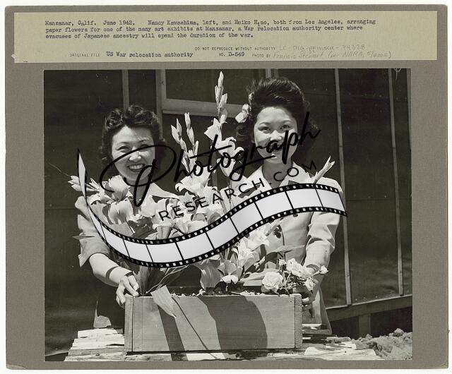 Manzanar, Calif. June 1942. Florence Yamaguchi, left, and Kinu Hirashima, both f